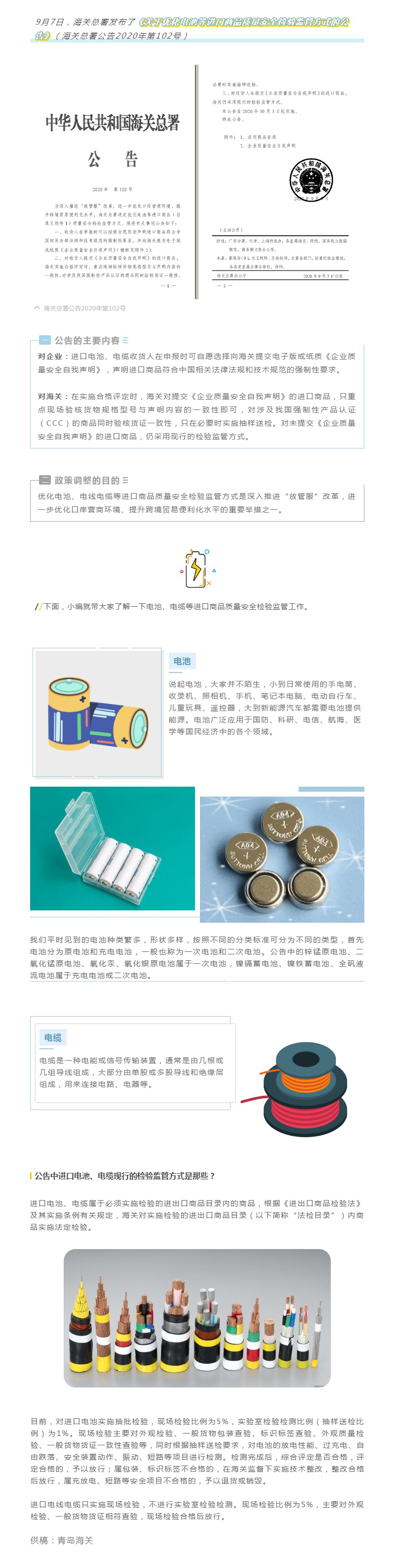 關(guān)于優(yōu)化電池等進(jìn)口商品質(zhì)量安全檢驗(yàn)監(jiān)管方式